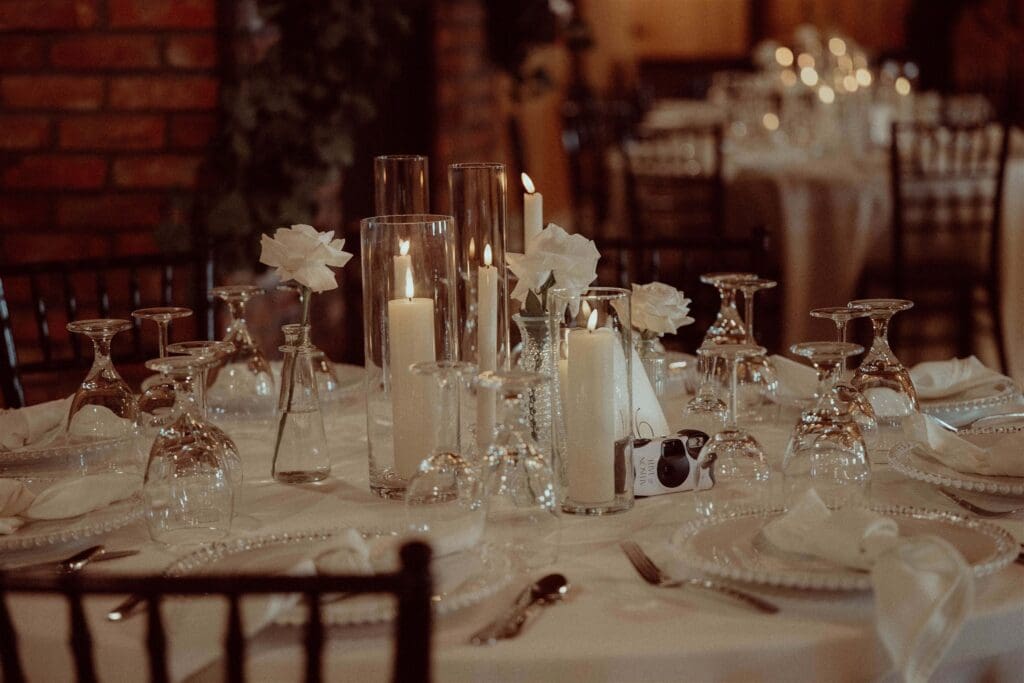 Make sure those elements are echoed on your round tables in a similar scale and tone.