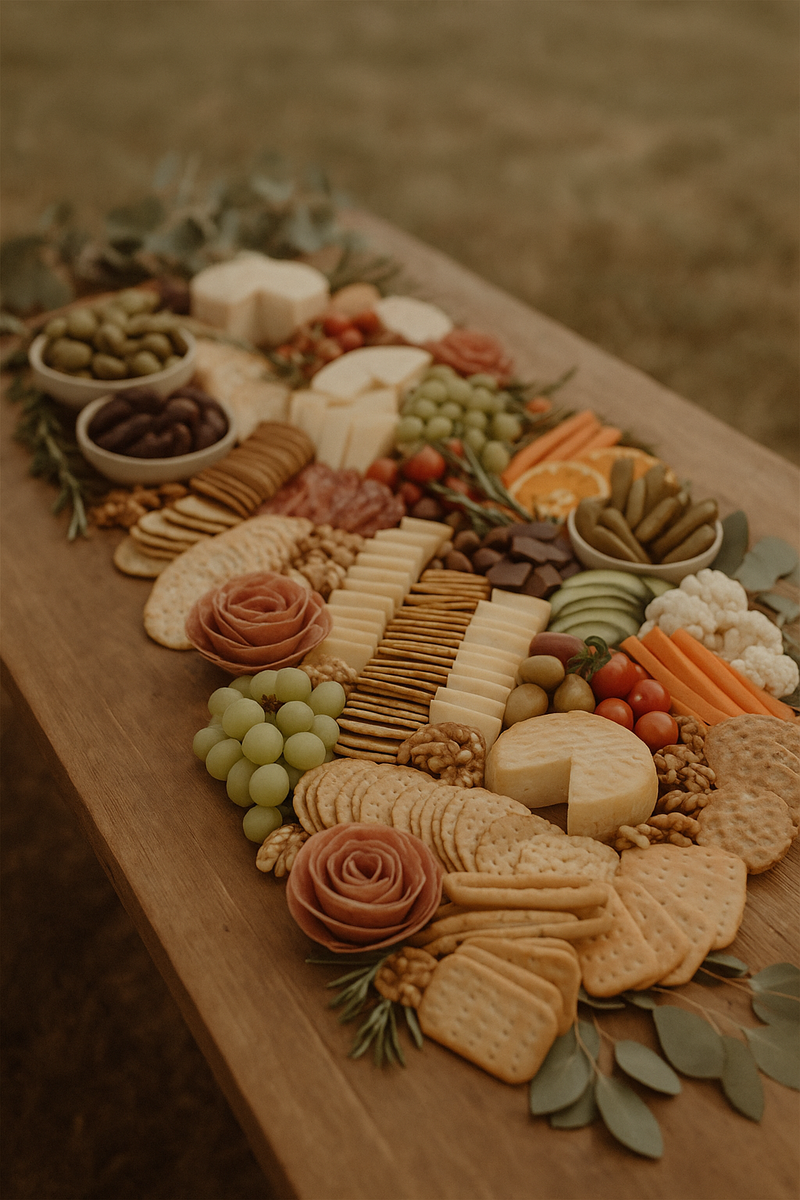 Elevate your celebration with our beautifully styled grazing tables — a feast for both the eyes and the taste buds. Thoughtfully curated with an abundance of premium cheeses, cured meats, fresh fruits, artisan breads, crackers, dips, and seasonal accompaniments, each table is designed to encourage mingling and delight guests from the very first glance. Styled with care to suit your event’s aesthetic, our grazing displays create a warm, inviting focal point that’s perfect for weddings, showers, corporate gatherings, or any occasion worth celebrating.